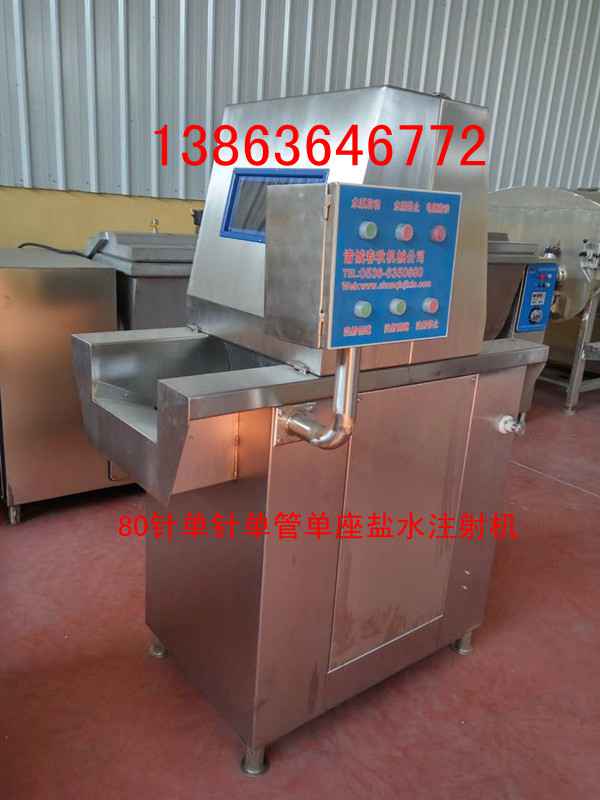 春秋鹽水注射機可將鹽水及輔料配制的腌漬均勻地注射到肉塊中,縮短腌漬時間,大大提高了肉制品的口味和出口率。可根據(jù)工藝要求調(diào)節(jié)壓力,腌漬劑均勻連續(xù)注入肉中,達到最理想的注射效果。本機設(shè)計嚴謹,結(jié)構(gòu)合理,操作簡便,是肉制品加工過程中的理想設(shè)備。本機采用不銹鋼制造,設(shè)計合理,結(jié)構(gòu)嚴謹,操作簡單,清洗方便,清潔衛(wèi)生。本機設(shè)有保護裝置,當(dāng)注射針碰到硬物時注射針隨之抬起,不受損壞。該機一次注射量可達10%-20%,二次注射可達到40%,是必不可缺的肉制品加工方法。