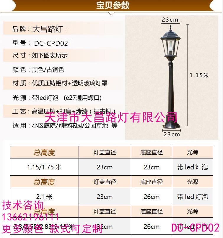 大昌路燈有限公司坐落于中國輕工業(yè)城市——天津。是專業(yè)生產(chǎn)各類戶外燈具,集產(chǎn)品、設(shè)計(jì)、開發(fā)、制造、檢測于一體。