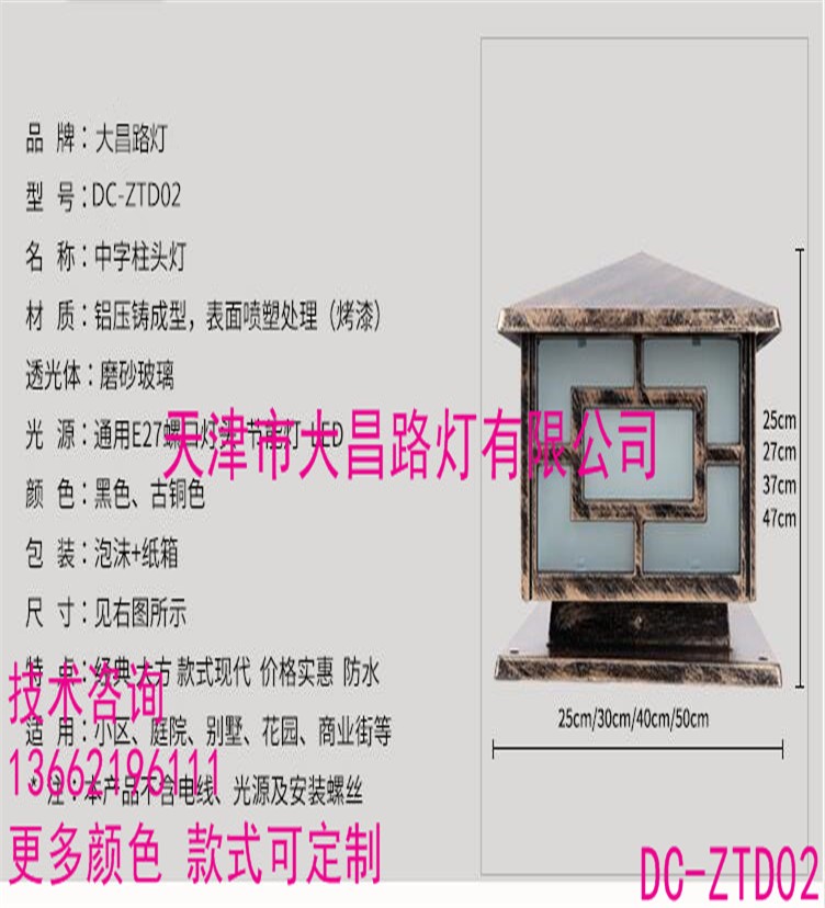名稱:中字柱頭燈