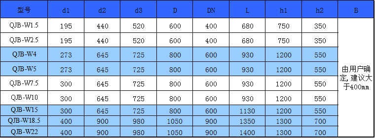 QJB-W型污泥回流泵是在潛水攪拌機生產(chǎn)技術(shù)基礎(chǔ)上開發(fā)的新型產(chǎn)品,該泵為二級污水處理廠混合液回流、反硝化脫氮的專用設(shè)備,亦可以用于地面排水時抽凈化水;灌溉和控制水道系統(tǒng);廢水處理過程中再循環(huán)或泥漿抽吸回路中需要微揚程、大流量場所。