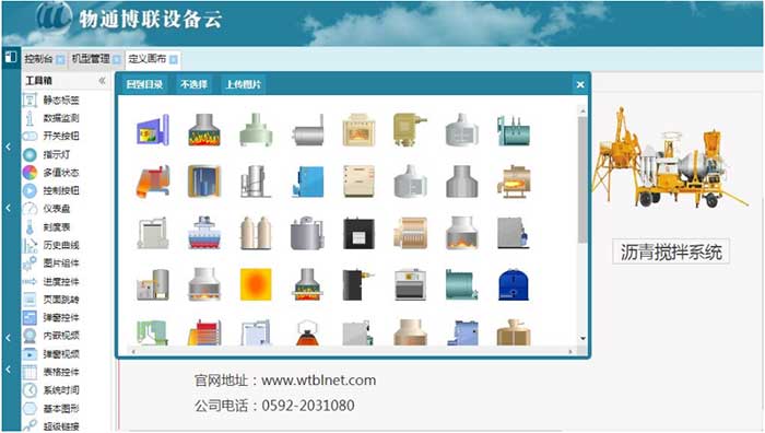 物通博聯(lián)云組態(tài)平臺,是專門為行業(yè)客戶快速開發(fā)自定義物聯(lián)網(wǎng)應(yīng)用提供一種數(shù)據(jù)平臺。不需要編程,通過簡單的模塊和控件拖拉繪制相應(yīng)的運行畫面,同時綁定設(shè)備的數(shù)據(jù),就可以實現(xiàn)對現(xiàn)場設(shè)備的數(shù)據(jù)形象的畫面監(jiān)控、遠程控制、數(shù)據(jù)曲線和報警展示;方便隨時隨地、直觀、形象地實時掌控設(shè)備及項目的運行狀況。