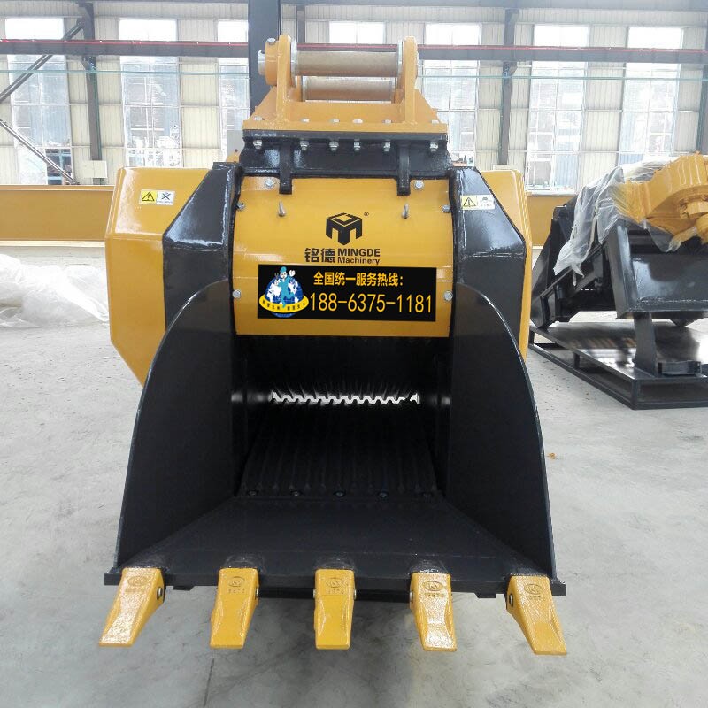 裝置具有破碎裝物料靈活,工作可靠,制造維護容易,適應性強,成本低等突出優(yōu)點。廣泛應用于礦山建筑材料交通等行業(yè)中,特別是在建筑垃圾處理方面體現(xiàn)出節(jié)能減排作用,利用挖掘機液壓油缸來驅動破碎,原理和破碎機一樣,通過顎板擠壓物料,在破碎斗出料口有調節(jié)裝置,可以根據(jù)需要破碎的大小來調節(jié),出料產(chǎn)量一般每小時20噸左右,也要看挖機師傅操作熟練度,破碎物料大小,物料硬度和挖機工作狀況等因素。此設備適用于多品牌挖機,根據(jù)噸位大小配給的破碎斗型號也不同,工作方便,可以現(xiàn)場破碎物料,像拆遷施工,山路維修等會節(jié)省大量時間,同時能節(jié)省部分運費,破碎后的混合料可回收可回填,還能節(jié)省基建所需的費用,總體來說這款挖掘機破碎斗移動方便,無論到哪都是破碎站