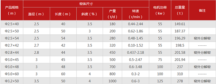 對(duì)于白云石回轉(zhuǎn)窯在作業(yè)中的產(chǎn)能是多少,需要看用戶選擇哪種型號(hào)的設(shè)備才能確定,為了方便用戶選購(gòu),以下羅列了每種型號(hào)設(shè)備的產(chǎn)量,以供用戶作為參考:
