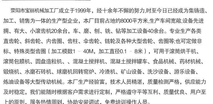 價(jià)格:面議瀏覽:500次聯(lián)系:趙亞楠 / 15225127570 / 企業(yè):滎陽市寶麗機(jī)械加工廠留言店鋪收藏