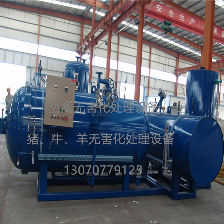 無(wú)害化處理原理:利用高壓飽和蒸汽,直接與畜尸組織接觸,當(dāng)蒸汽遇到畜尸而凝結(jié)為水時(shí),則放出大量熱能,可使油脂溶化和蛋白質(zhì)凝固,同時(shí)借助于高溫與高壓,將病原體殺滅。