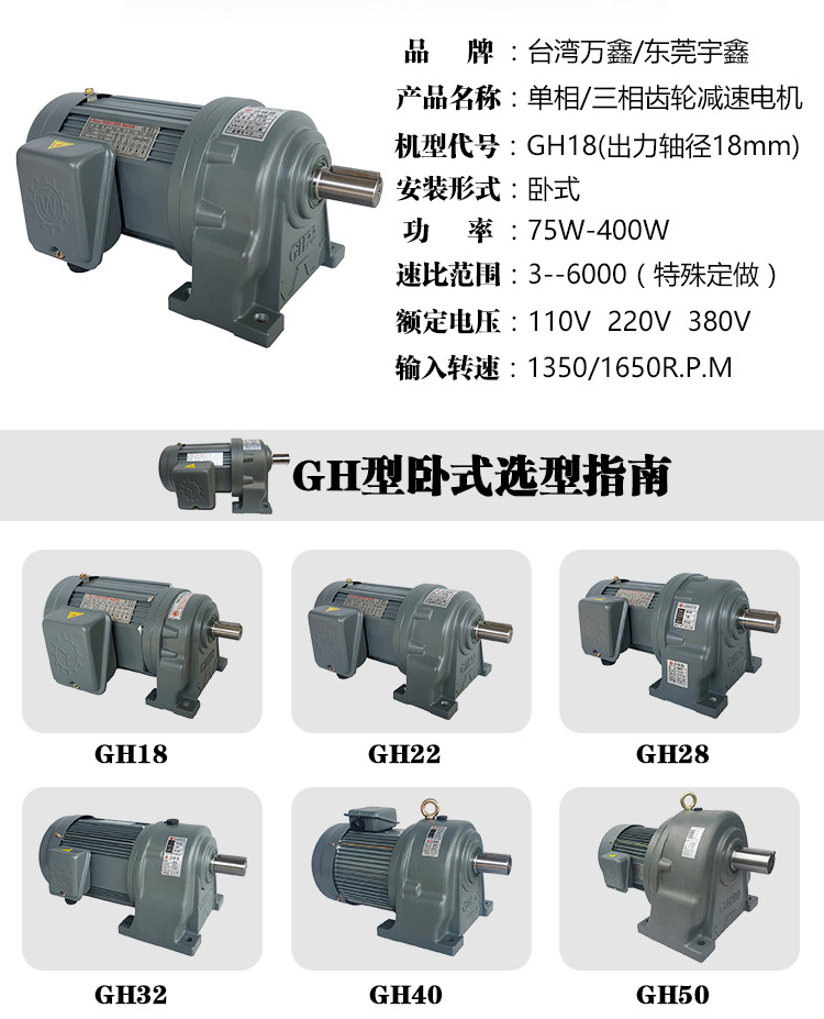 我廠所供齒輪減速電機型號規(guī)格齊全,小型調(diào)速電機6W-180W,中型齒輪減速電機75W-3700W,大型齒輪減速馬達5HP-20HP,速比選擇范圍廣,無法盡數(shù)展示,產(chǎn)品持續(xù)上新中,價格請來電咨詢。非標特殊品亦可加工定做,請客戶根據(jù)實際需要咨詢備注。所有功率及比數(shù)范圍配有詳細尺寸圖,如有選型需要,請咨詢客服!另齒輪減速電機可選配AC/DC 通電/斷電剎車,手釋放剎車,調(diào)速器、變頻器。老客戶選型請?zhí)峁┲八卯a(chǎn)品銘牌,有對選型有疑問的客戶可隨時咨詢我司客服人,我司將派備專業(yè)技術(shù)人員為您疑答惑!