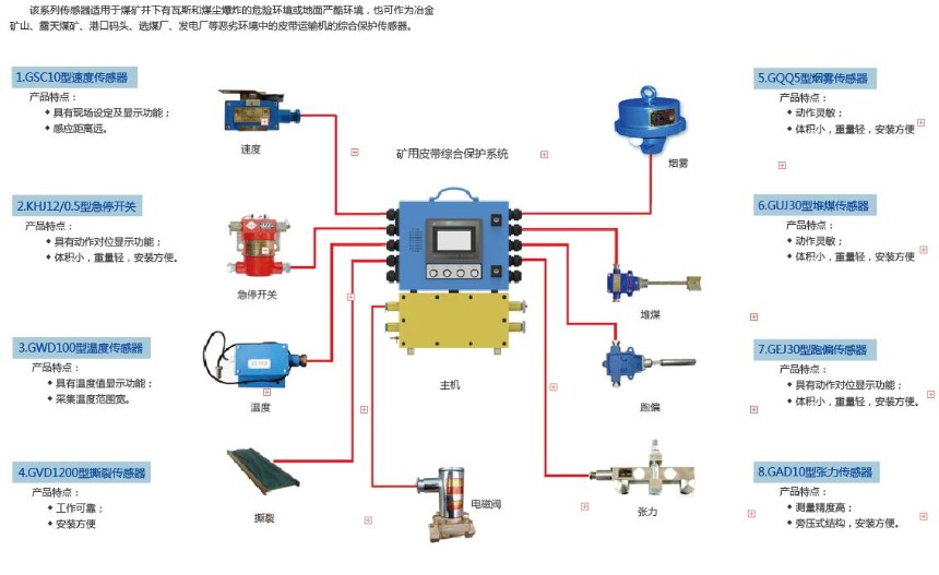 該系列傳感器適用于煤礦井下有瓦斯和煤塵危險(xiǎn)環(huán)境或地面嚴(yán)酷環(huán)境,也可作為冶金礦山、露天煤礦、港口碼頭、選煤廠、發(fā)電廠等惡劣環(huán)境中的皮帶運(yùn)輸機(jī)的綜合保護(hù)傳感器。