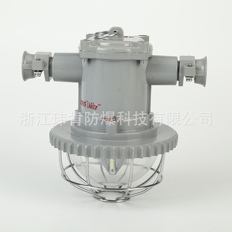 該燈具由燈具隔爆外殼、光源LED及配套電器組成。鋼化玻璃透明件用金屬件壓緊在下殼上;各隔爆外殼之間采用平面隔爆方式連接,形成平面隔爆接合面。電纜引入裝置采用直接引入,可適應(yīng)多種線徑的電纜。