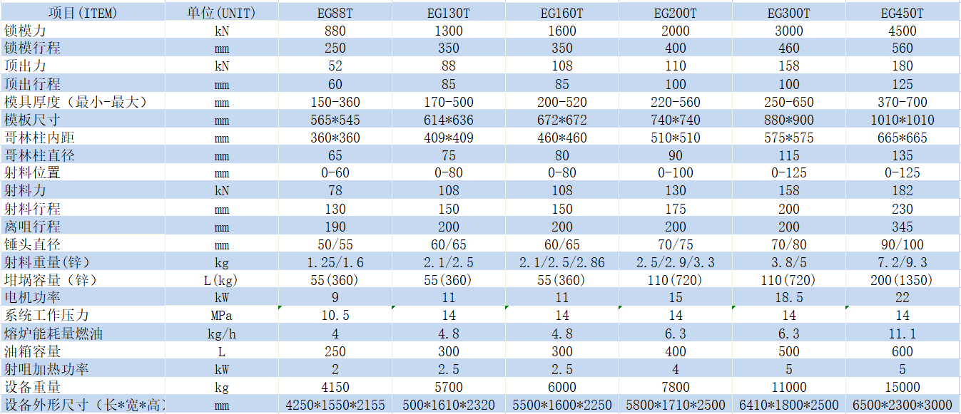 壓鑄機技術(shù)參數(shù)