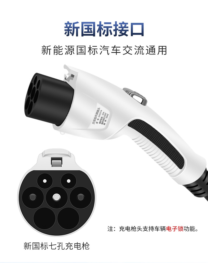 新國標(biāo)七孔充電槍,槍頭帶電子鎖扣功能,安全更防盜