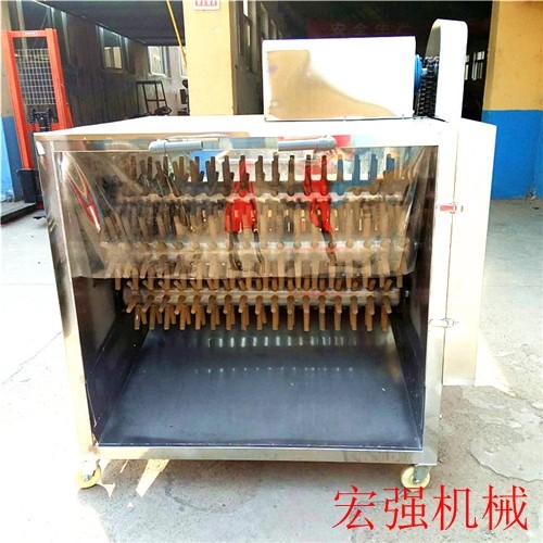 7軸雞鴨鵝脫毛機(jī),根據(jù)家禽大小,一次可以放入10只雞,6-7只鴨,3-4只鵝。用戶可以根據(jù)家禽大小自行決定投放數(shù)量,投放的過多會(huì)造成脫毛不徹底。在脫毛前要將家禽先進(jìn)行浸燙,我們公司有各種型號(hào)的浸燙機(jī),可以根據(jù)需要進(jìn)行搭配使用,也歡迎咨詢我們,我們會(huì)給您提供購(gòu)買指導(dǎo)。脫毛機(jī)脫毛時(shí)間是1分鐘左右,脫毛完成后需要腳踩開關(guān)打開,脫完的白條就出來了。