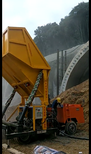 2、運(yùn)輸車把混凝土物料通過上料支撐直接傾倒至翻轉(zhuǎn)斗內(nèi),混凝土物料為潮噴料,其含水率不應(yīng)大于0.2,否則會(huì)影響下料口下料。