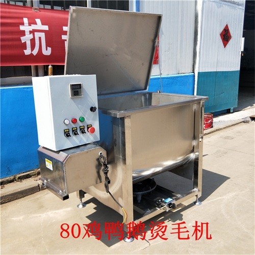 宏強(qiáng)HQ-JTC80型雞鴨鵝電氣兩用燙毛機(jī),這款燙毛機(jī)能夠自動攪拌,自動攪拌和人工攪拌相比,能夠讓家禽浸燙的更加的均勻,也更加的徹底,后期的脫毛也就更輕松,脫毛的效率也就更高。設(shè)備一次可以燙雞15只,燙鴨10只,燙鵝5-7只,這個不是固定的,用戶根據(jù)家禽的大小進(jìn)行投放。設(shè)備的燙毛時間不是固定的,因為家禽的重量以及品類不一樣,需要浸燙的時間也不一樣,這個沒有辦法固定。設(shè)備設(shè)有排污閥,浸燙完成后,打開閥門就能將污水排出來,省時省力。