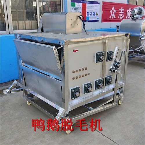 宏強(qiáng)大七軸鴨鵝脫毛機(jī),這款脫毛機(jī)要比普通的七軸脫毛機(jī)以及老式的熱鍍鋅脫毛機(jī)要大一些,能夠脫毛的數(shù)量也就多一些,設(shè)備一次可以脫毛鴨14-15只,脫鵝10只左右。一個(gè)小時(shí)的脫毛能力在200-300只左右。這個(gè)數(shù)量要根據(jù)浸燙的好壞來(lái)決定,前期浸燙的好,后期脫毛的效率就高。設(shè)備的脫毛時(shí)間是固定的,時(shí)間在1分半左右,這個(gè)是不需要人工控制的。