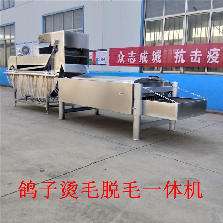 宏強鴿子燙毛脫毛一體機,這款設(shè)備是一款可以一個人完成整個操作過程的設(shè)備,設(shè)備為船式結(jié)構(gòu),能夠自動燙毛,燙毛之后自動脫毛,脫毛之后能夠自動出來。設(shè)備在殺完后,放進投放口,通過鏈板帶動鴿子進入燙池,這個燙池是不用氣缸控制燙毛的出料時間的,燙毛完成后,直接開始脫毛,脫毛完成后自己出來。整個過程是不需要人工控制的。