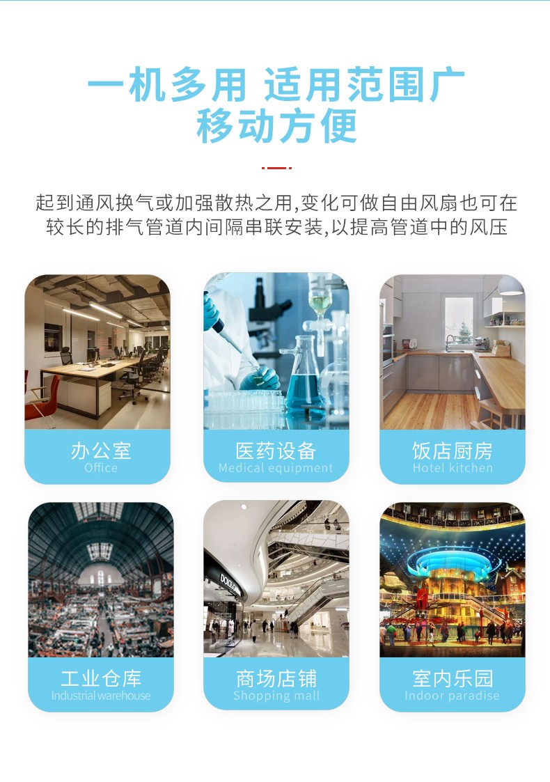 2、管道式:風(fēng)扇兩端都成直角法蘭邊可以安裝在管道的中間。