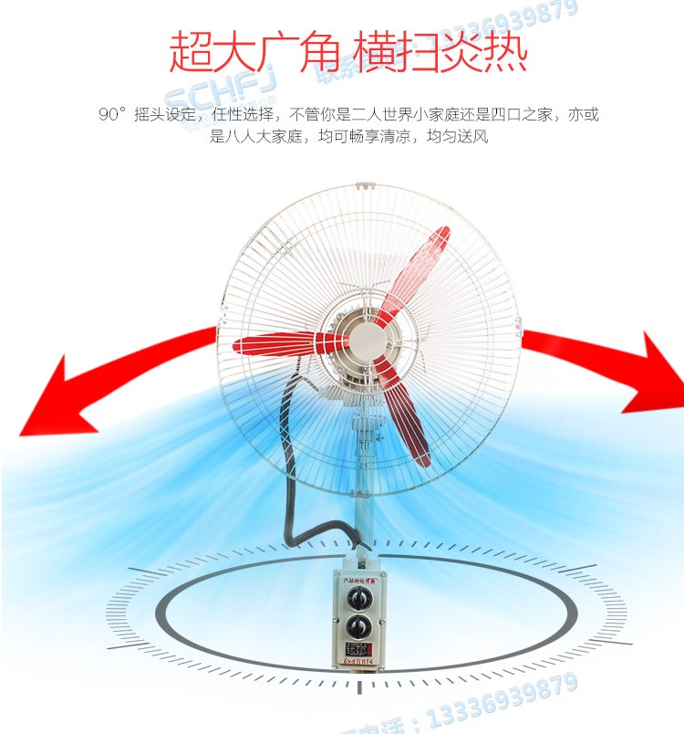 ● 產(chǎn)品由防爆電動機、葉輪、網(wǎng)罩、底座、強固安裝板及搖頭機構(gòu)等部分組成;