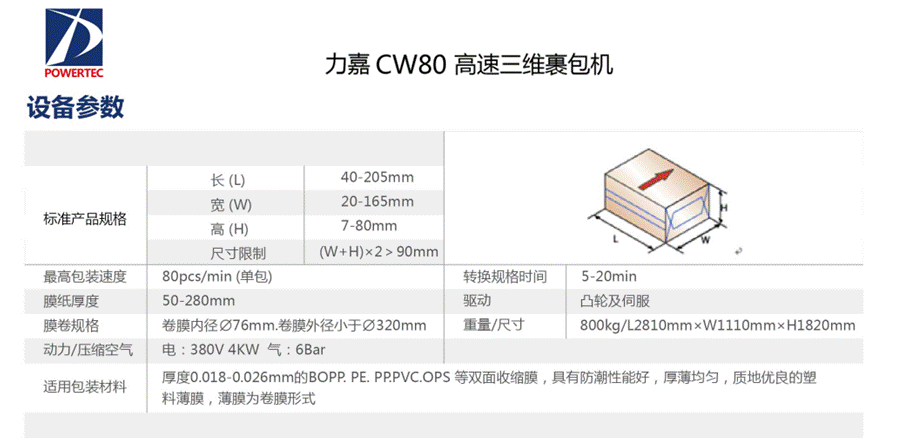 力嘉CW80高速三維裹包機
