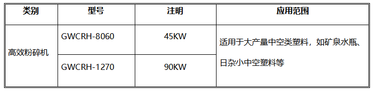 GWCRH系列高效型粉碎機是綠豐機械針對PET瓶磚、牛奶瓶瓶磚等壓縮瓶、罐類塑料而研發(fā)設(shè)計的專用粉碎設(shè)備。主要用于大型PET長絲級瓶片清洗線配套或大產(chǎn)能撕碎機后端的細碎配套之用。針對PET瓶磚料結(jié)合成品片徑尺寸的不同需求,GWCRH系列粉碎機單機產(chǎn)能從2000kg/h至5000kg/每小時不等。GWCRH系列粉碎機粉碎室主體及主軸等部分均采用四軸CNC加工中心一體成型加工工藝,整機焊接比例不足20%,在刀片磨損允許范圍內(nèi),單機可支持7?24小時不停機連續(xù)作業(yè),且性能持久穩(wěn)定。