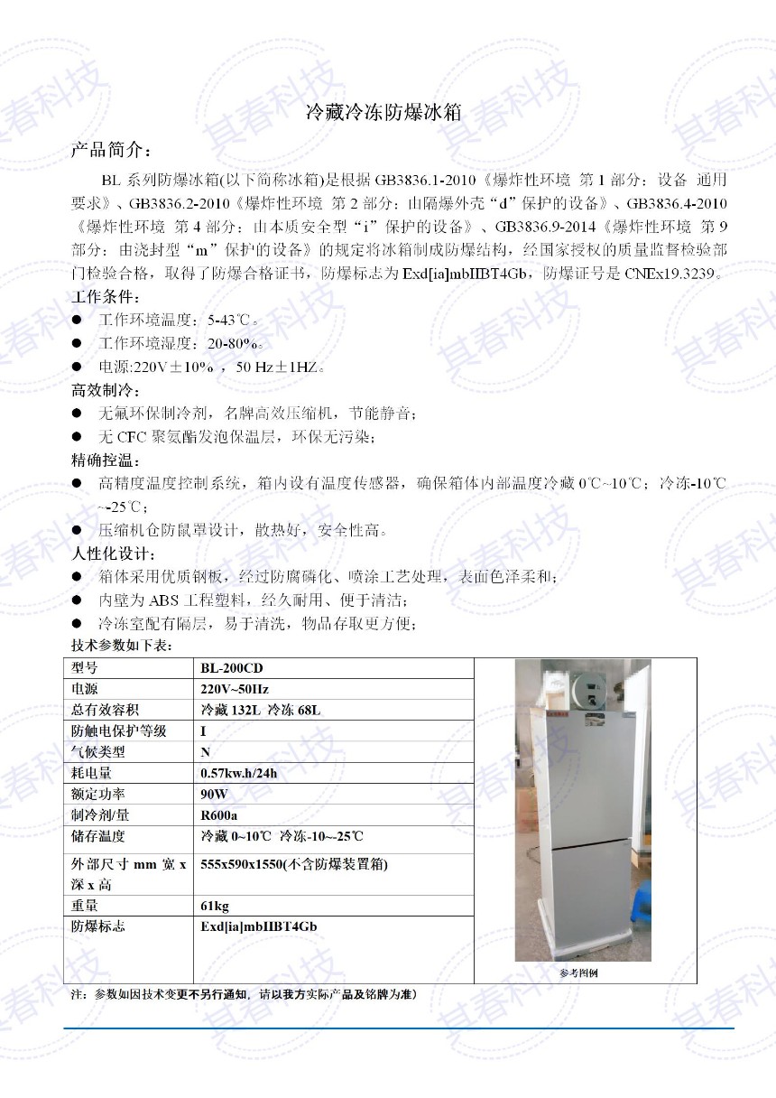 公司主營實(shí)驗(yàn)室防爆冰箱,化學(xué)品防爆冰箱,化工廠防爆冰箱,防爆冷藏柜,防爆冷藏冷凍防爆冰箱,臥式防爆冰柜,超低溫防爆冰箱,不銹鋼防爆冰箱,防爆冰箱制造廠商,浙江其春電氣科技有限公司是一家生產(chǎn)防爆冰箱,防爆冰柜,防爆冷柜的廠家,公司擁有完整、科學(xué)質(zhì)量管理體系,誠信,質(zhì)量獲得業(yè)界認(rèn)可