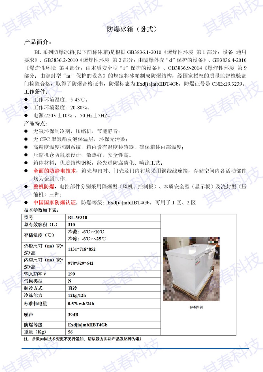 其春單門臥式防爆冰箱冷藏冷凍轉(zhuǎn)換BL-W310