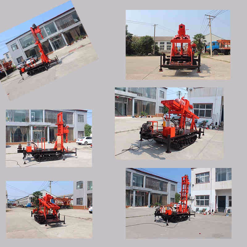 3.鉆機底盤配置液壓高支腿,可用于鉆機 調(diào)平、裝卸車,作業(yè)時也可作為輔助支撐。 該系列鉆機采用履帶底盤,越野性能強。