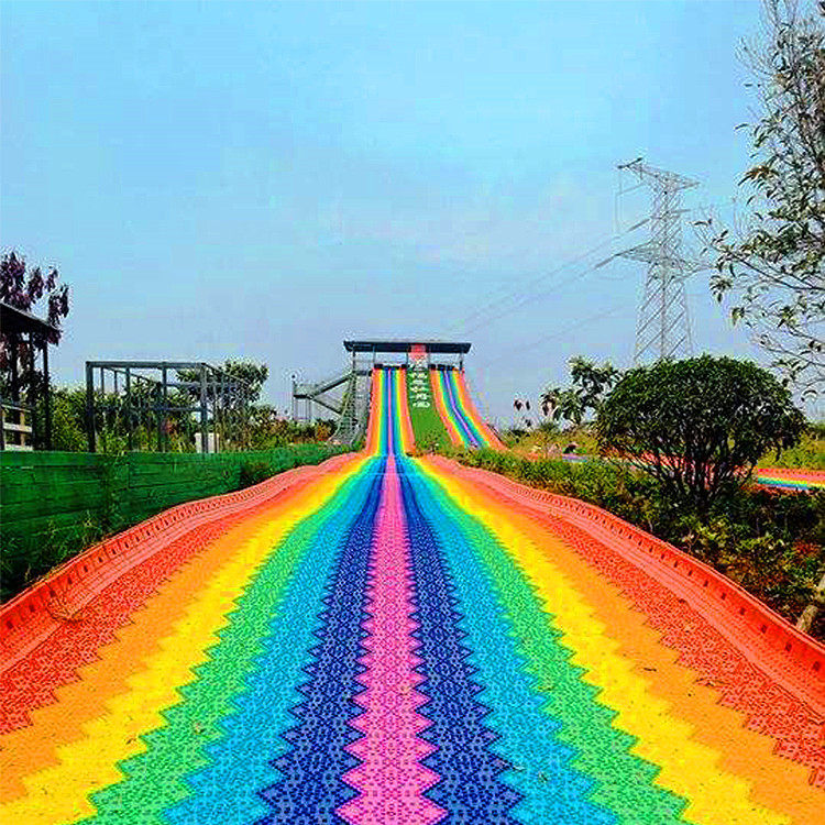 網(wǎng)紅彩虹滑道受濕度和影響較大,在雨水、雪的影響下,滑速 ,比晴朗炎熱天氣的滑行速度增加20百分之左右,因此在緩沖區(qū),長(zhǎng)度和減速的設(shè)計(jì)上需要進(jìn)行包含設(shè)計(jì)處理,根據(jù)客戶的運(yùn)營需求(如四季運(yùn)營或單季節(jié)運(yùn)營)進(jìn)行特殊處理。網(wǎng)紅彩虹滑道是一條色彩炫麗的滑道,像一道彩虹掛在山坡。從長(zhǎng)長(zhǎng)的滑道飛馳而下,整個(gè)身體仿佛從彩虹中穿過!驚險(xiǎn) 又有著難以形容的浪漫
