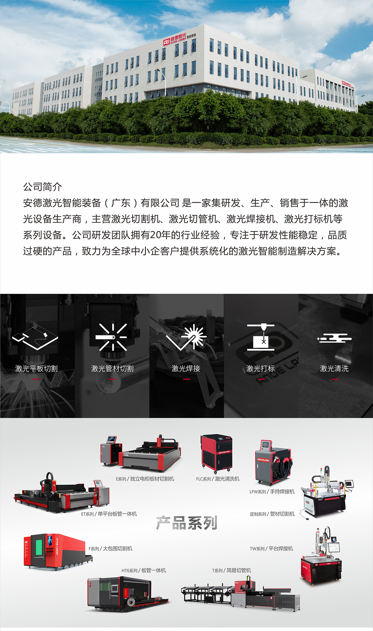 安德激光智能裝備(廣東)有限公司 位于廣東省江門市,是一家集研發(fā)、生產(chǎn)、銷售于一體的激光設(shè)備生產(chǎn)商,主營激光切割機(jī),激光切管機(jī),激光焊接機(jī)、激光打標(biāo)機(jī)等系列激光設(shè)備。公司擁有面積達(dá)53000㎡自建智能化產(chǎn)業(yè)園區(qū),研發(fā)團(tuán)隊擁有20年的行業(yè)經(jīng)驗,一直致力為中小企客戶提供系統(tǒng)化的激光智能制造解決方案。