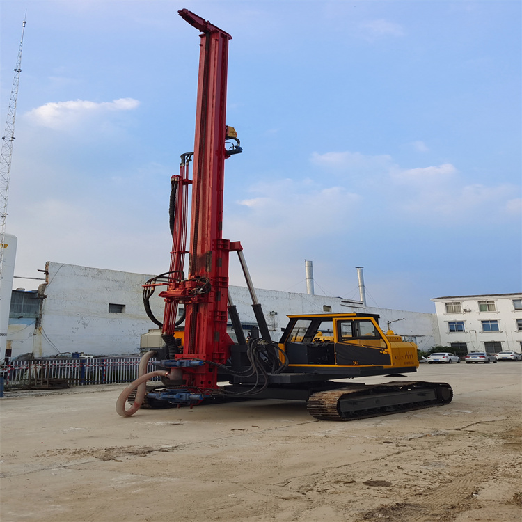 工作時(shí)由動(dòng)力頭驅(qū)動(dòng)鉆桿、鉆頭旋轉(zhuǎn)、卷?yè)P(yáng)機(jī)控制鉆具的升降,被鉆切削下的土料由螺旋片輸送到地面。鉆至設(shè)計(jì)深度提鉆成孔,根據(jù)工法要求也可邊提鉆邊壓注混凝土(或泥漿)而成樁。