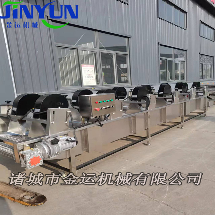 風(fēng)干機主要應(yīng)用于水果蔬菜、農(nóng)副產(chǎn)品、水產(chǎn)品、袋裝產(chǎn)品等清洗后的表面除水風(fēng)干,也可用于鹵制出來后表面降溫包裝之后的產(chǎn)品,亦可用于經(jīng)過高低溫殺菌、冷卻后的產(chǎn)品的降溫工作,用風(fēng)干機將表面的水分吹干,以方便迅速裝箱入庫。主要作用就是可以縮短食品或包裝袋清洗后的包裝時間。風(fēng)干機除具備脫水功能還有除油漬、水垢等功效。且該機技術(shù)性能穩(wěn)定,效率高。適用于食品、飲料、制藥等多個行業(yè)。
