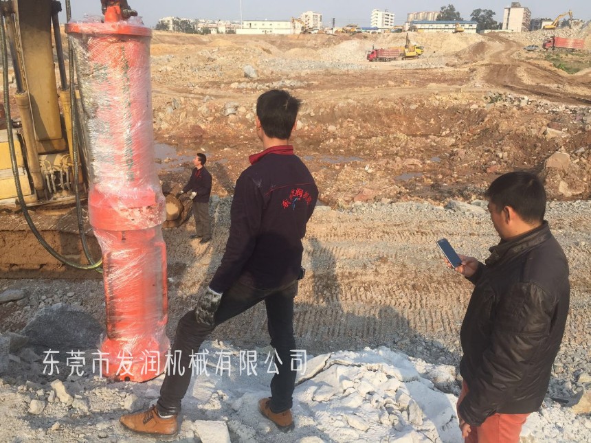 3、插入劈裂機,依斷裂層破拆。 液壓劈裂機破拆法的經(jīng)濟消耗為:電費 人工工資 機械耗損;而破碎錘作業(yè)基本上都是選取“租賃機械帶操作人員”的方式,其經(jīng)濟消耗為高租賃費,柴油能源的消耗。經(jīng)過發(fā)潤的試驗取樣,液壓劈裂機破拆法的經(jīng)濟消耗只有破碎錘的15%。從施工效果上來講,在同樣的石方破拆工程上,一臺破裂機的效率是破碎錘的2倍。在破碎錘敲打巖石時,破碎錘會反彈過來,沒有起到破碎作用。而劈裂機是大塊大塊的劈石頭。也就是說,液壓劈裂機破拆法是一個高效經(jīng)濟的方法。