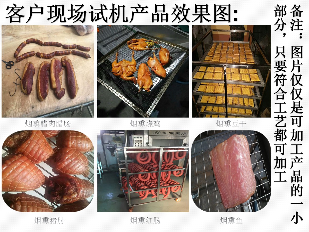 多功能煙熏箱,煙熏爐具有、干燥、烘干、煙熏、蒸等功能,適合香腸、火腿、禽類、煙熏臘腸設(shè)備魚制品等多種產(chǎn)品的加工。根據(jù)需要,可以加裝制冷系統(tǒng),食品煙熏機實現(xiàn)冷熏功能。
