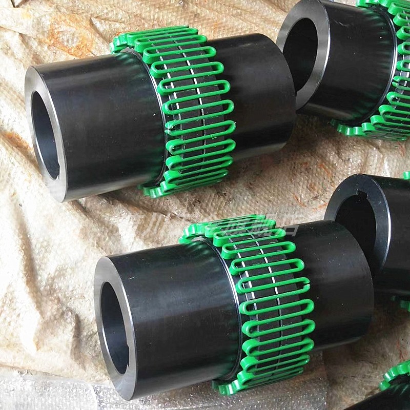 蛇形彈簧聯(lián)軸器是利用分為一組或幾組的蛇形彈簧,嵌在兩半聯(lián)軸器凸緣上的齒間內(nèi),以實現(xiàn)兩半聯(lián)軸器聯(lián)接,為防止蛇形彈簧在離心力作用下甩出及避免蛇形彈簧與齒接觸處發(fā)生干摩擦,需用封閉的殼體罩住,并在里面注以潤滑油或潤滑脂。蛇形彈簧聯(lián)軸器分為恒剛度和變剛度兩種,主要取決于彈簧接觸齒的下列兩種形式:齒形為直線形:在正常負載時,蛇形彈簧與齒接觸點之間的距離不隨蛇形彈簧變形量的改變而變化,剛度不變,兩半聯(lián)軸器的相對轉(zhuǎn)角與所傳遞的轉(zhuǎn)矩為線性關系,屬于恒剛度蛇形彈簧聯(lián)軸器。