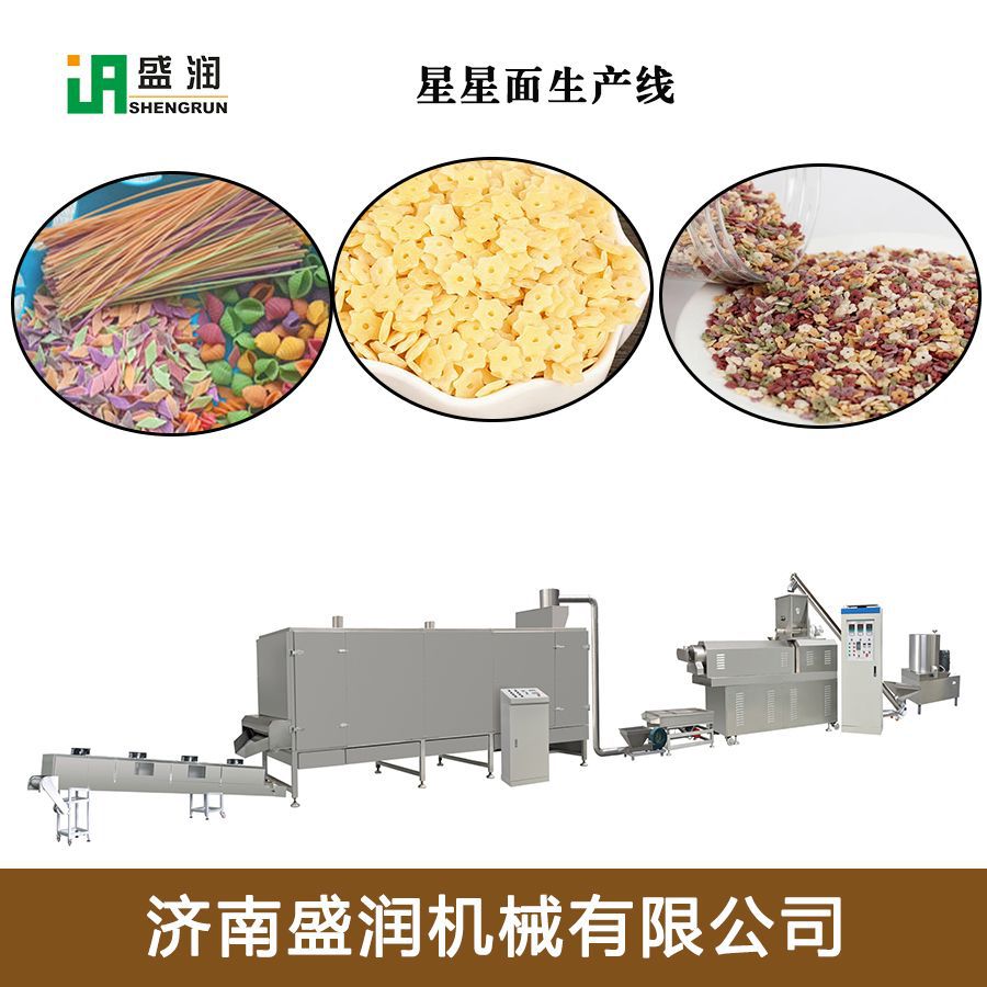 嬰幼兒輔食星星顆粒面生產(chǎn)線該生產(chǎn)線設(shè)計合理,自動化程度高,擠壓參數(shù)控制精確,主機配有高低壓螺桿,增加了原材料的使用范圍,降低了成本,改善了產(chǎn)品的品質(zhì)。