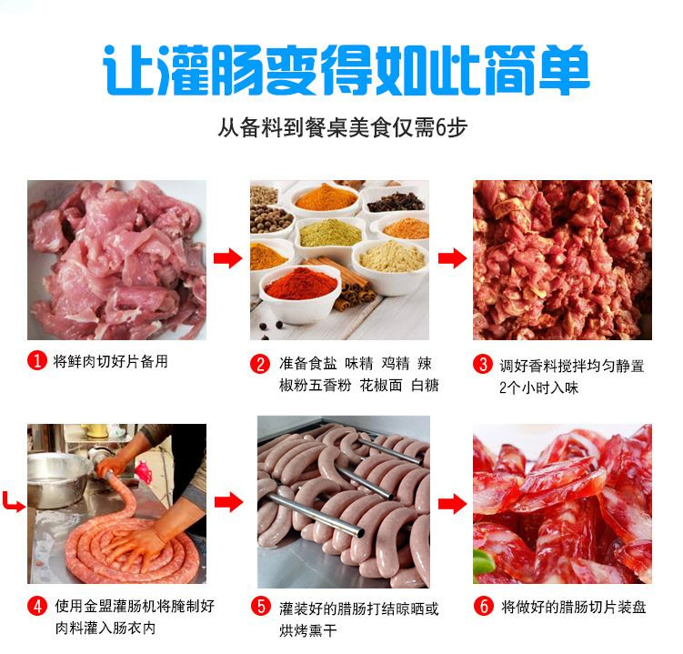 3.設(shè)備整體結(jié)構(gòu)合理、全自動香腸灌腸機造型美觀、性能穩(wěn)定、操作簡單、維修方便臺灣烤腸,臺式烤腸,脆皮腸,早餐腸,雞肉腸,歐式烤腸,中式臘腸等近幾年,隨著人們物質(zhì)生活水平的提高,飯館、餐館的遍地開花,人們外出用餐的普遍化,直接帶動了相關(guān)的需求,為灌腸機行業(yè)提供了寶貴的發(fā)展機遇,呈現(xiàn)出廣闊的市場前景,銷售也逐漸呈穩(wěn)定增長趨勢。