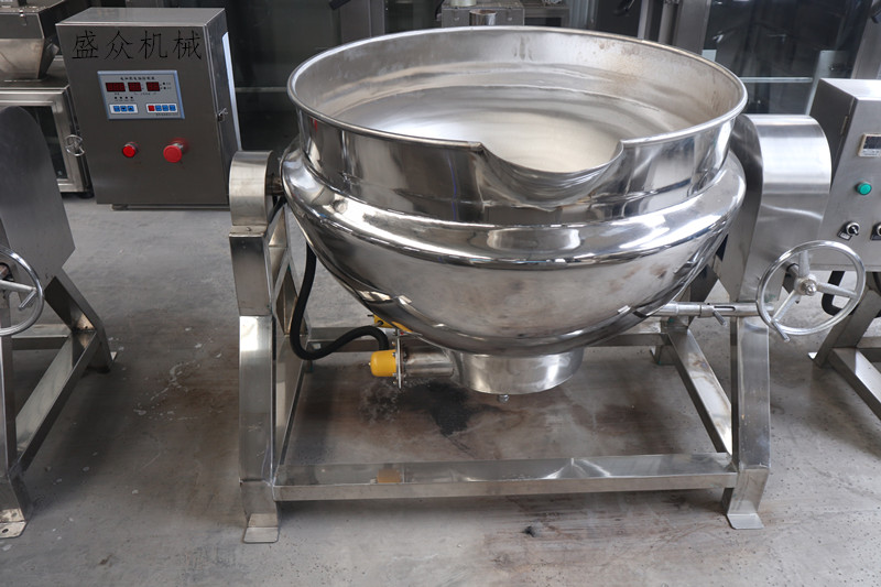 夾層鍋又名蒸汽鍋、蒸煮鍋、夾層蒸汽鍋。通常由鍋體和支腳組成。鍋體是由內(nèi)外球形鍋體組成的雙層結(jié)構(gòu)形式,中間夾層通入蒸汽加熱。有固定式、可傾式、攪拌式等樣式。蒸汽夾層鍋具有受熱面積大、熱、加熱均勻、液料沸騰時(shí)間短、加熱溫度容易控制、外型美觀、安裝容易、操作方便、可靠等特點(diǎn)。