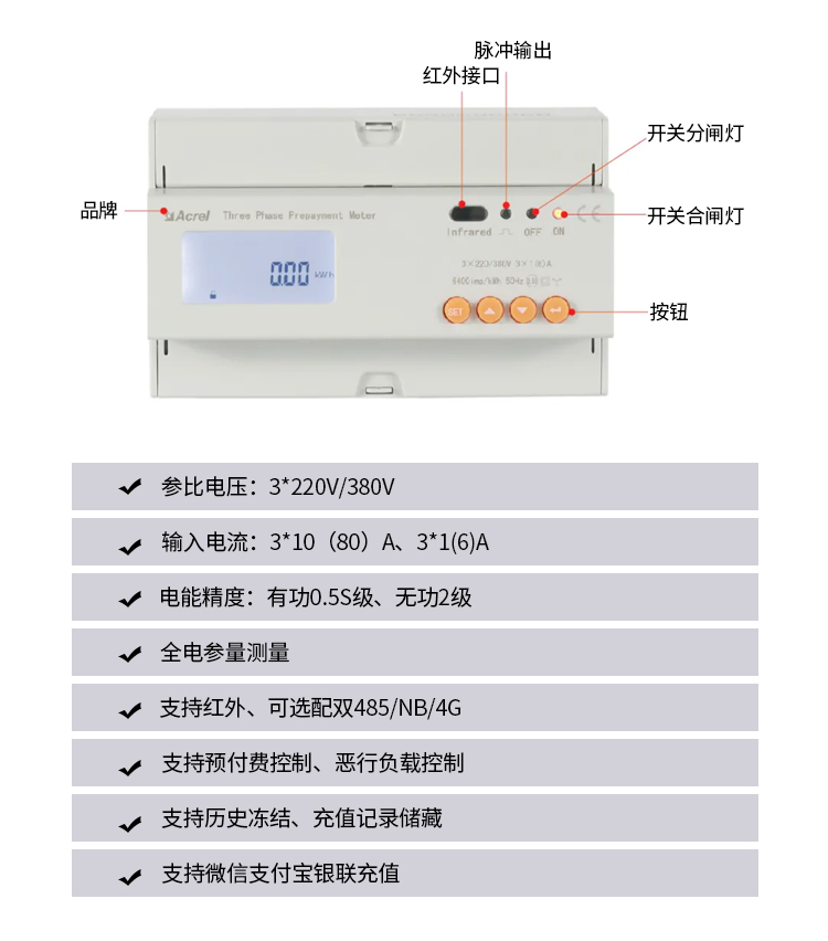 電子式預(yù)付費(fèi)電能計(jì)量表采用導(dǎo)軌式安裝結(jié)構(gòu),具有預(yù)付費(fèi)、負(fù)載控制及RS485通信等功能,性能指標(biāo)符合GB/T18460.3-2001標(biāo)準(zhǔn)。是改革傳統(tǒng)用電體制,提高用電管理水平的理想電能表。