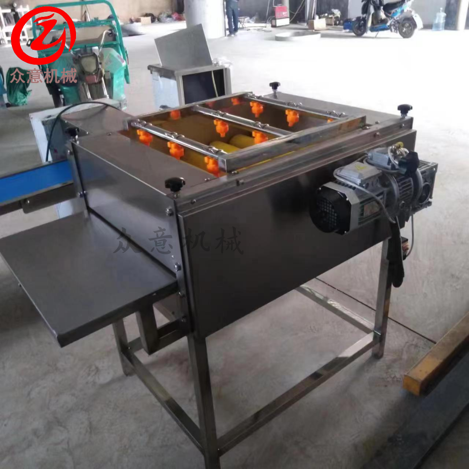 粽葉清洗機有上下兩層毛刷輥制作,毛刷輥有特殊材料制作,不會對粽葉產生損傷,毛刷輥的軟硬適中。粽葉清洗機架體采用SUS304不銹鋼制作,不生銹,不腐蝕。在設備的下方帶有循環(huán)水水箱,水箱中帶有循環(huán)水裝置,補水裝置。粽葉清洗機電器都使用防水電器,安全防觸電。設備的速度采用變頻調速的方法,可以根據(jù)粽葉的干凈程度進行調節(jié)。清洗上方安裝帶有可視窗的蓋子,防止清洗過程中水花四濺。粽葉清洗機使用壽命長,產量大,清洗效果好,得到廣大用戶的喜愛。