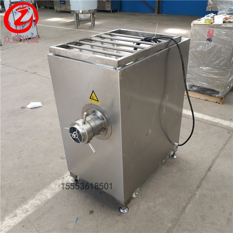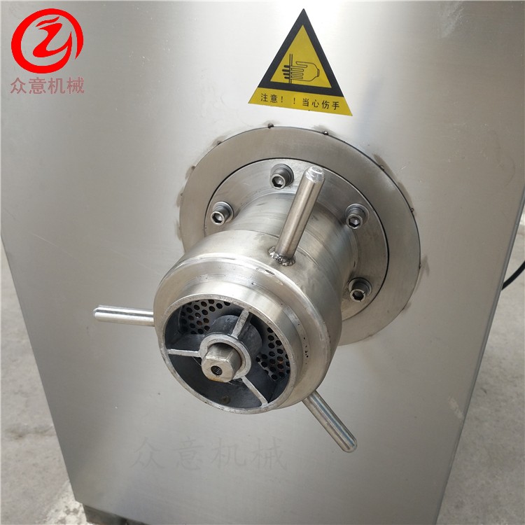 凍肉絞肉機的作用是把塊狀的原料肉按工藝要求,將肉塊、碎肉、脂肪等原料肉精細的切碎,同時還能將調(diào)料、填充劑與肉一起按要求切碎攪拌制成各種不同尺寸的顆粒狀肉塊,經(jīng)過冷卻供下道工序使用。絞肉機適用于各種凍肉、鮮肉、雞骨架、鴨骨架、豬皮、牛皮、雞皮、魚類、水果、蔬菜等。廣泛適用于各種香腸、火腿腸、午餐肉、丸子、咸味香精、寵物食品和其他肉制品等行業(yè)??蓪霰P/大型凍盤肉直接絞碎,設計多種孔板組合,更適合不同肉制品的要求。