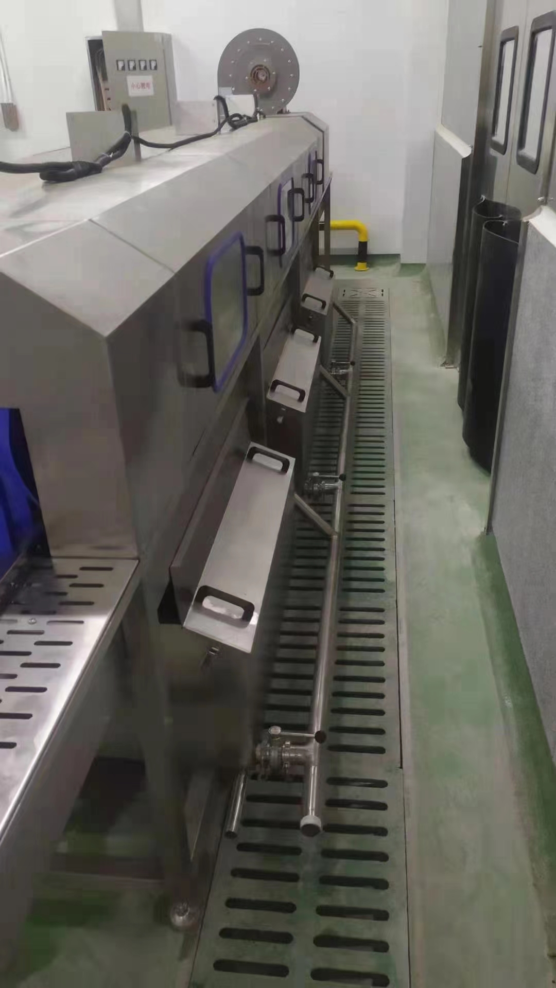 8、周轉(zhuǎn)筐出料部位帶有熱風泵6臺,把清洗干凈的料框吹干送出。