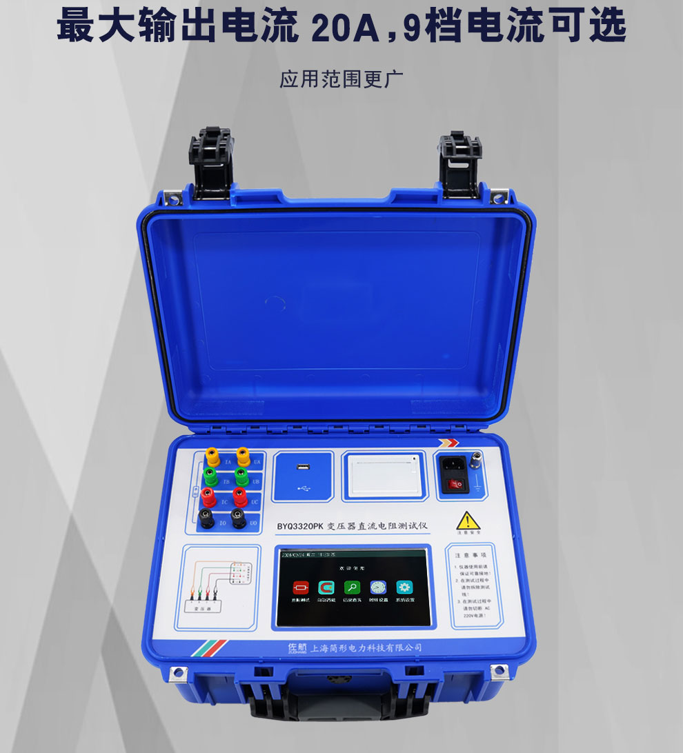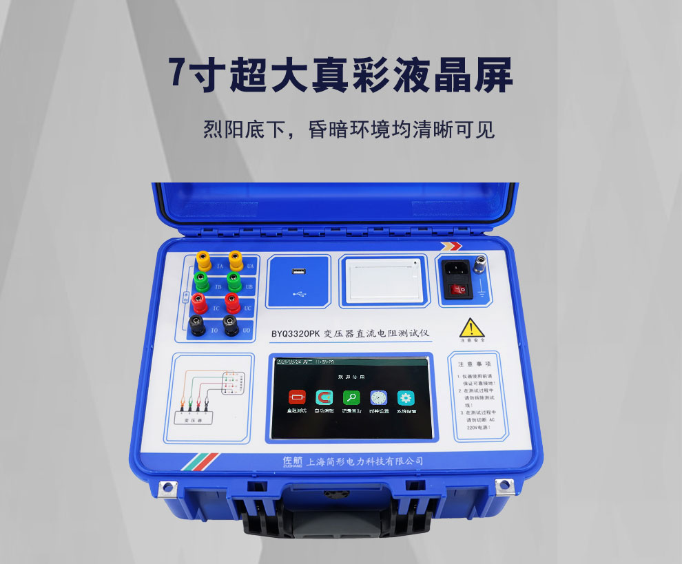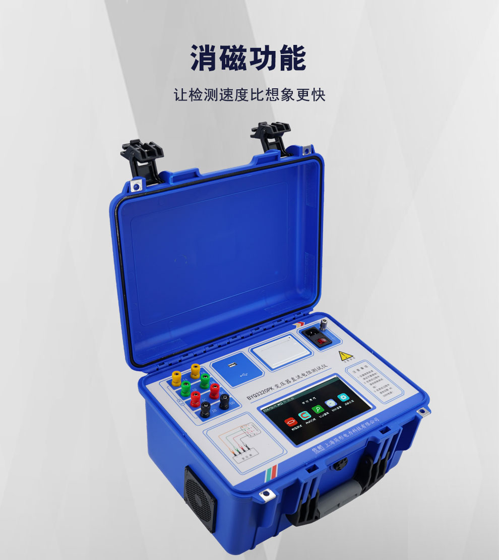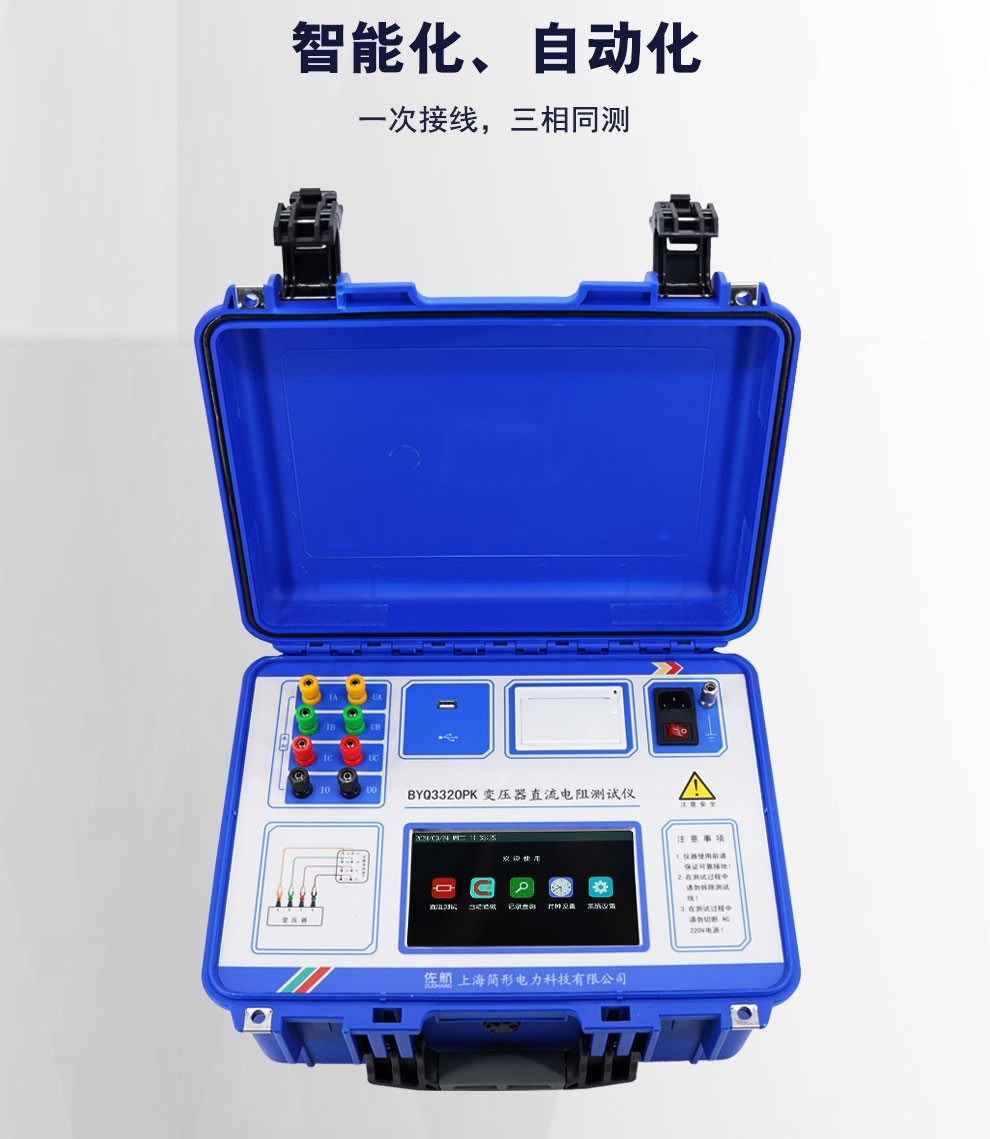 變壓器的直流電阻是變壓器制造中半成品、成品出廠試驗、安裝、交接試驗及電力部門預防性試驗的必測項目,能有效發(fā)現(xiàn)變壓器線圈的選材、焊接、連接部位松動、缺股、斷線等制造缺陷和運行后存在的隱患。為了滿足變壓器直流電阻快速測量的需要,我公司利用自身技術優(yōu)勢研制了佐航BYQ3320PK變壓器直流電阻測試儀。該儀器是集 三相測試(Yn,Y Y、△)和 消磁功能于一體的新一代快速測試儀,是測量大型電力變壓器直流電阻的理想設備。屏幕采用大屏幕高分辨率液晶顯示屏,方便現(xiàn)場使用,具有中文菜單提示功能,操作簡便直觀,一次接線完成所有直阻測試項目,測試速度快,準確度高,量程寬。