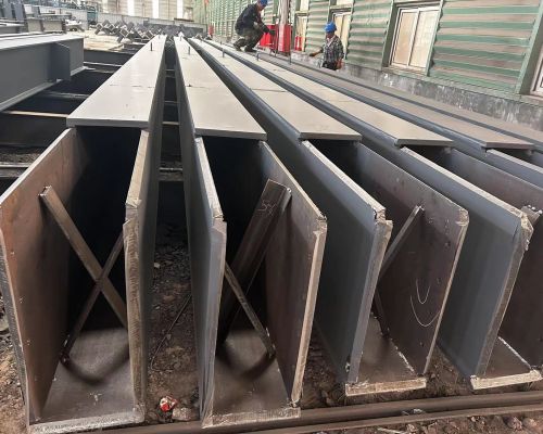 在房屋的建筑以及加固過程中,有時需要用已經(jīng)加工完成的箱型柱,箱型柱一般由蓋板、腹板、底板和隔板組成,當(dāng)橋梁的跨度較大時,箱型梁是很好的結(jié)構(gòu)形式,它的閉合薄壁截面抗扭剛度很大,對于彎橋和采用懸臂施工的橋梁尤為有利。頂板和底板都有巨大的面積,可以有效抵抗正負(fù)彎矩并滿足配筋需要,強度高并且安裝簡便,具有良好的動力性和小的收縮變形值。