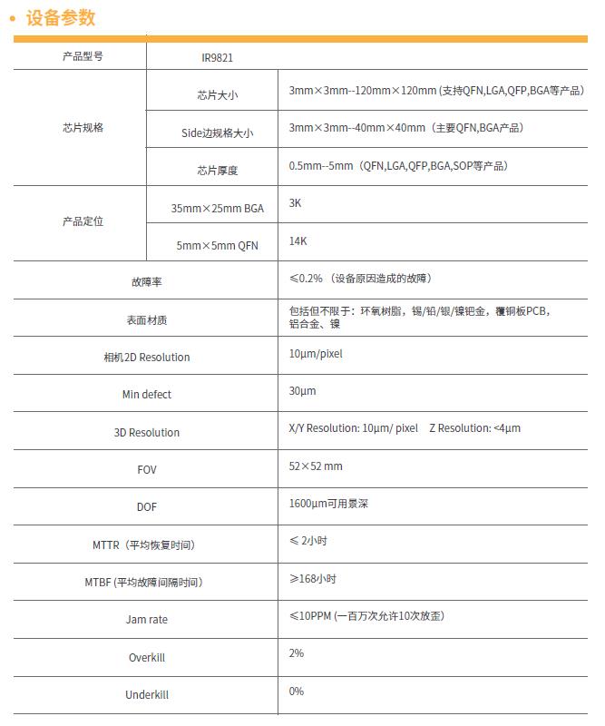 IR9821系列提供帶托盤輸出的全自動光學(xué)檢測,對微小缺陷類型有更高靈敏度,結(jié)合3D量測和深度學(xué)習(xí)算法實(shí)現(xiàn)缺陷類型快速分類,提高封裝質(zhì)量檢測。
