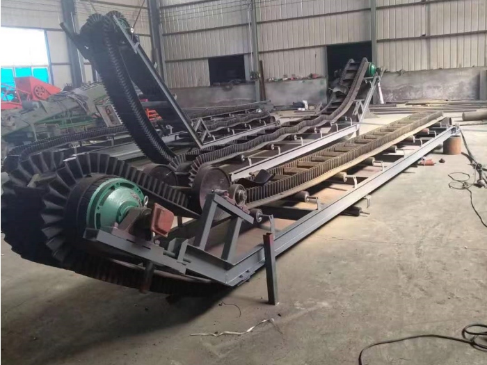 大傾角皮帶輸送機簡稱大傾角皮帶輸送機,主要用于大傾角或垂直90?輸送散狀物料,解決普通、花紋帶式輸送機所不能達到的輸送角度,大傾角皮帶輸送機是在平形橡膠運輸帶兩側(cè)粘上可自由伸縮的橡膠波形立式"裙邊",在裙邊之間又粘有一定強度和彈性的橫隔板組成匣形斗,可以防止物料撒落。