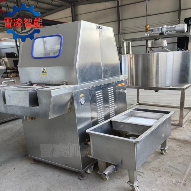 鹽水注射機:諸城雷凌智能裝備有限公司生產(chǎn)的鹽水注射機是將鹽水注入肉中充分腌漬,注入配制的水溶液的肉塊能使肉質(zhì)嫩化,松軟,提高了肉制品的品位和出品率。
