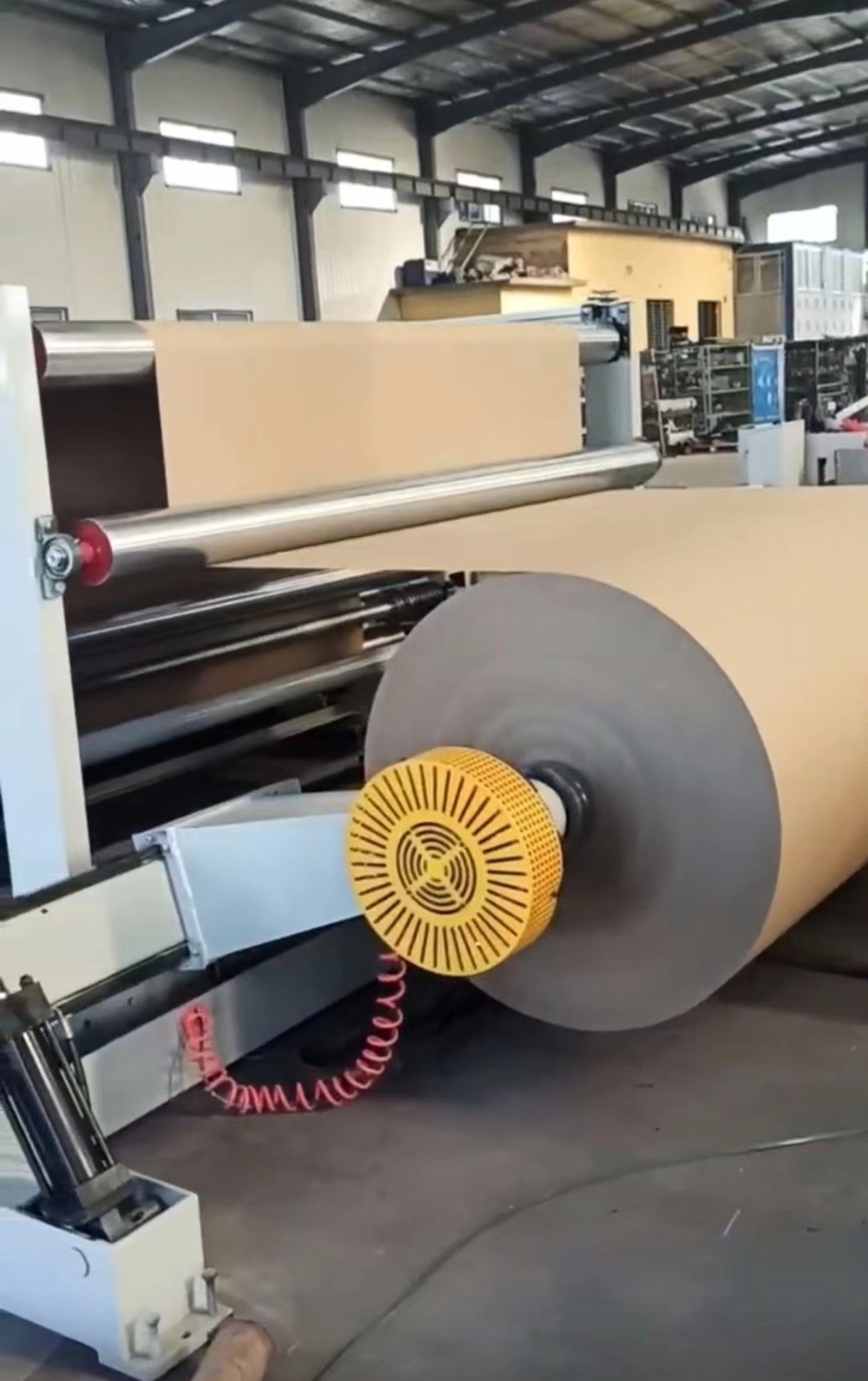 全自動(dòng)紙芯智能生產(chǎn)供給系統(tǒng):專用于多臺(tái)大型高速?gòu)?fù)卷機(jī)的紙芯全自動(dòng)供給。系統(tǒng)可根據(jù)指令自動(dòng)上管,預(yù)設(shè)長(zhǎng)度裁切,廢料判定回收,自動(dòng)對(duì)中,智能分析定位,升降輸送到收卷底輥中間位置,該系統(tǒng)國(guó)內(nèi)首次替代進(jìn)口生產(chǎn)線,該系統(tǒng)最長(zhǎng)可加工9米母管,最大裁切長(zhǎng)度3.3米,該系統(tǒng)可自動(dòng)適應(yīng)3英寸和6英寸紙芯,更換不同厚度和直徑紙芯時(shí)機(jī)器不需要人工做任何調(diào)整,機(jī)器自適應(yīng)完成轉(zhuǎn)換,達(dá)到智能、高速、高效紙芯供給需求。該裁切輸送系統(tǒng)的投入使用,填補(bǔ)了國(guó)內(nèi)市場(chǎng)空白。