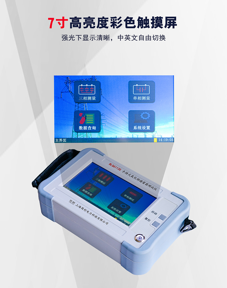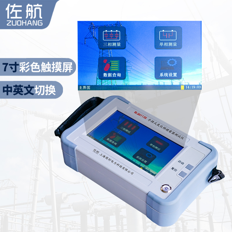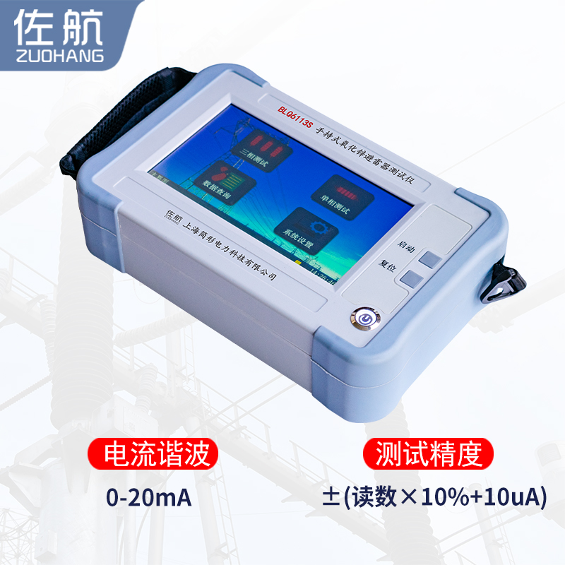 手持式氧化鋅避雷器測試儀是用于現(xiàn)場和實驗室檢測避雷器各項相關(guān)電氣參數(shù)的專用儀器,廣泛應(yīng)用于氧化鋅避雷器的現(xiàn)場在線監(jiān)測(帶電測試)和實驗室(停電檢修)的測試中。符合中華人民共和國電力行業(yè)標(biāo)準(zhǔn)《DL474.5—92現(xiàn)場絕緣試驗實施導(dǎo)則—避雷器試驗》的要術(shù)。佐航BLQ6113S氧化鋅測試儀采用微電腦進行采樣、控制等先進技術(shù),可測量氧化鋅避雷器在工頻電壓下的全電流、三次諧波、阻性電流、阻性電流峰值、容性電流、有功功率等。并顯示電壓、電流的波形及打印輸出測試數(shù)據(jù)。采用大屏幕液晶顯示,漢字菜單提示操作,使人機交換功能更強,同時提供現(xiàn)場的波形顯示。本儀器具有接線簡單、測量精度高、可靠性強等特點。儀器體積小、重量輕,采用一體化設(shè)計,便于攜帶和野外作業(yè)。
