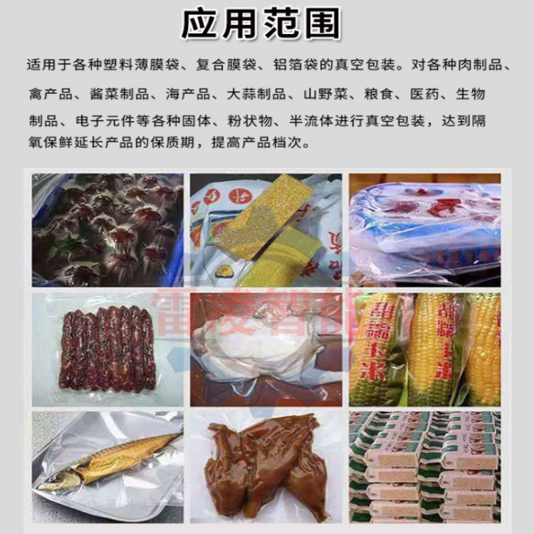 本機(jī)適用于食品行業(yè)肉類、醬制品、調(diào)味品、果脯、糧食、豆制品、化學(xué)制品、藥材等顆粒、液體等產(chǎn)品進(jìn)行抽真空封口包裝,適用于多種塑料袋復(fù)合袋的真空包裝。該機(jī)體積小、重量輕、能耗低,適用商店、超市、家庭使用。抽真空、封口、冷卻、進(jìn)氣至機(jī)蓋開啟,全過程自動控制。