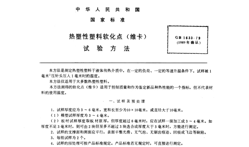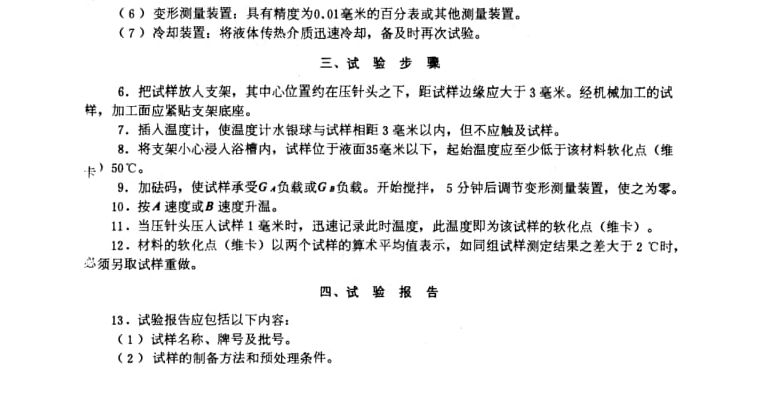 GB/T 1633 (idt ISO 306-2004)維卡軟化溫度(VST)的測定;