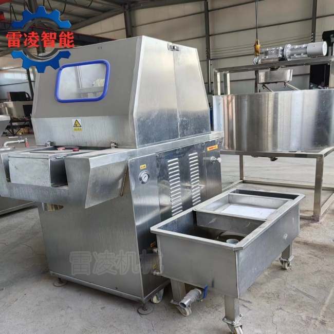 鹽水注射機(jī):鹽水注射機(jī)是將鹽水、淀粉、大豆蛋白及輔料注入肉中充分腌漬,依靠先進(jìn)的技術(shù)、利用機(jī)械裝置將腌制劑通過(guò)注射針注射入產(chǎn)品,使之在全自動(dòng)鹽水注射機(jī)內(nèi)均勻分布達(dá)到快速腌制、增加調(diào)味、保持肉食營(yíng)養(yǎng)、強(qiáng)化口感的目的。